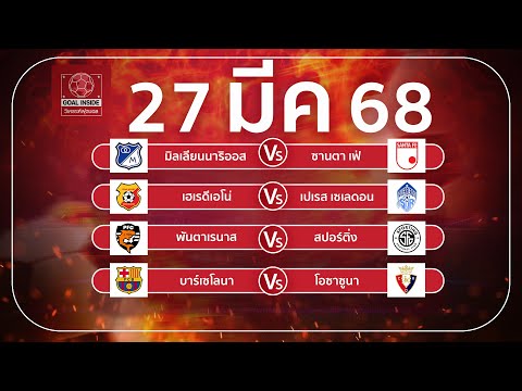 ทีเด็ดบอลวันนี้ บอลเต็ง วิเคราะห์บอลวันนี้ 27 มี ค 68 วิเคราะห์บอลแม่นโดย Goal Inside