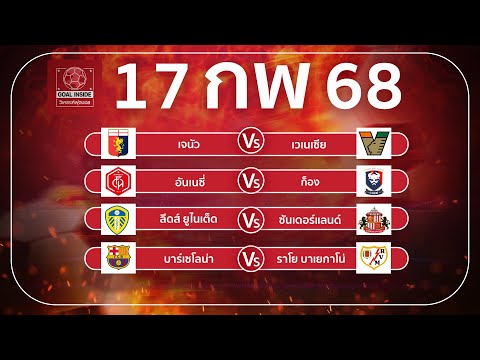 ทีเด็ดบอลวันนี้ บอลเต็ง วิเคราะห์บอลวันนี้ 17 ก พ 68 วิเคราะห์บอลแม่นโดย Goal Inside