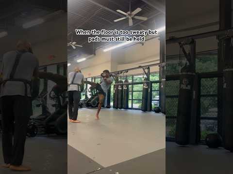 When the floor to sweaty but pads still need to be demolished!! #mma #muaythai #padwork