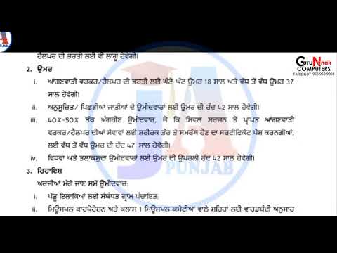 ANGANWADI RECRUITMENT / ਆਂਗਣਵਾੜੀ ਭਰਤੀ Department of Social Security And Women & Child Development