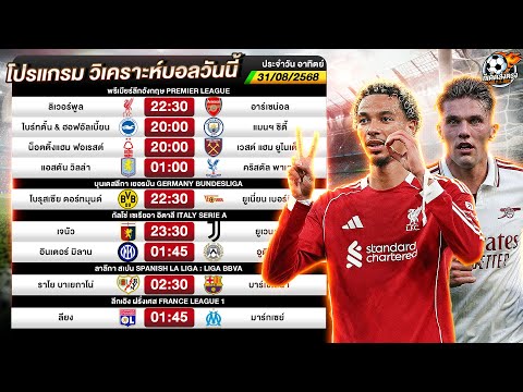 วิเคราะห์บอลวันนี้ พรีเมียร์ลีก ลิเวอร์พูล vs อาร์เซน่อล 31/08/68 น้าชัชทีเด็ดส่งตรง
