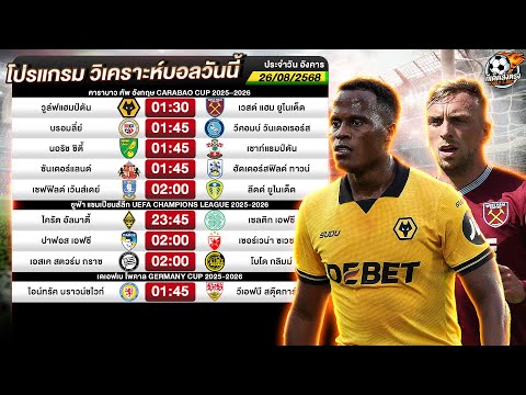 วิเคราะห์บอลวันนี้ แจกทีเด็ด VIP 9คู่ 26/08/68 ทีเด็ดส่งตรง