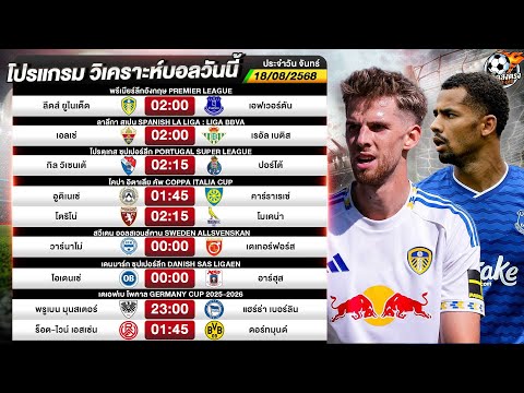 วิเคราะห์บอลวันนี้ พรีเมียร์ลีก คืนจันทร์ ลีดส์ vs เอฟเวอร์ตัน 18/08/68 น้าชัชทีเด็ดส่งตรง